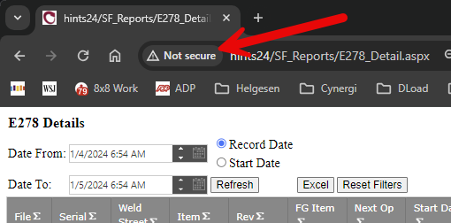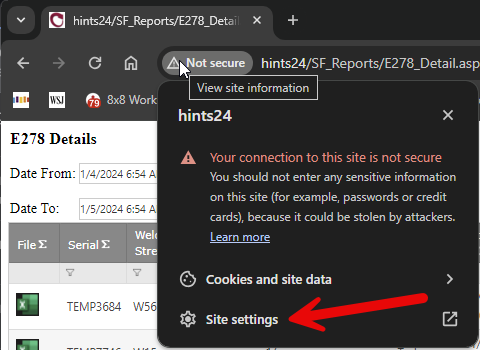 - Click the "Not secure" button to the left of the URL