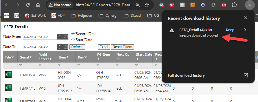 If you receive a "Insecure Download Blocked" error (see below) complete the following steps to fix.