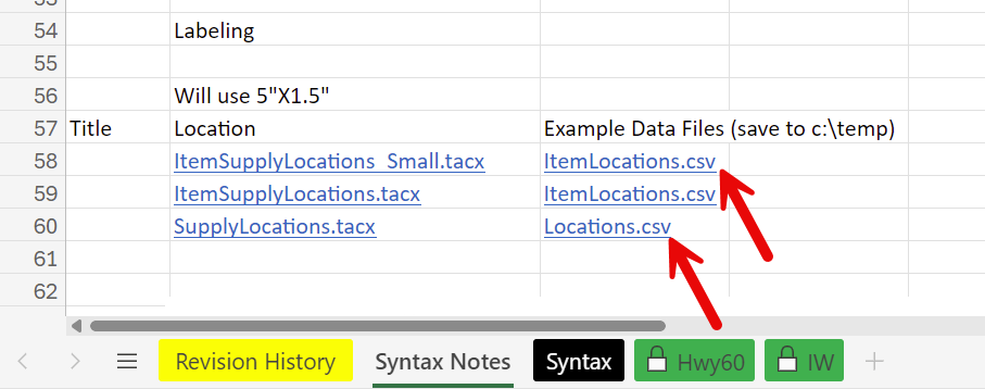 6. Download the example data files (both ItemLocations.csv are the same so only download one)