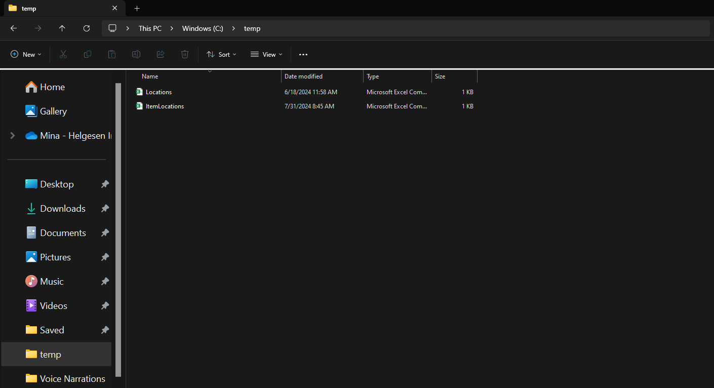 7. Move ItemLocations.csv and Locations.csv to your new temp folder