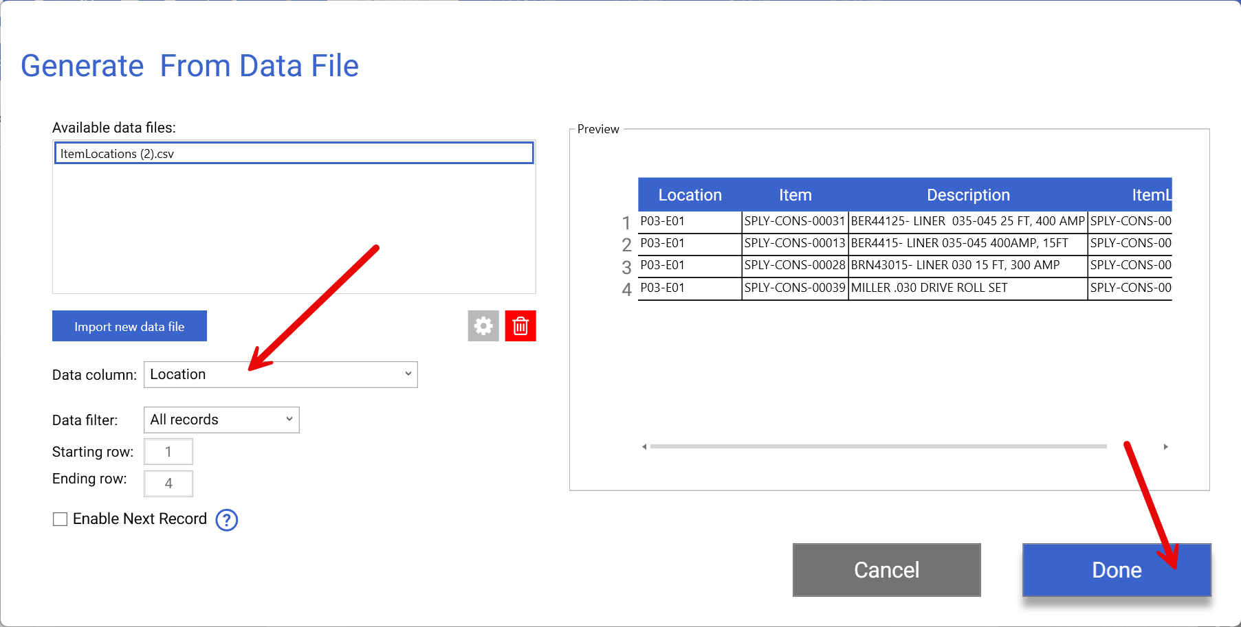 17. Check the Data source columns have header labels box, then click done