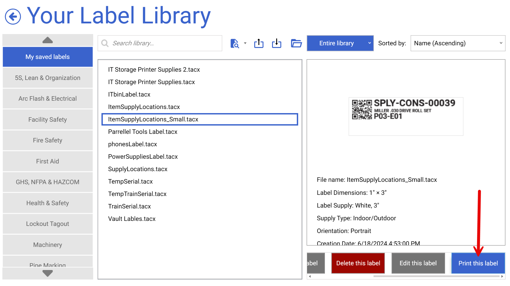 20. Go back out to Your Library and click Print this Label